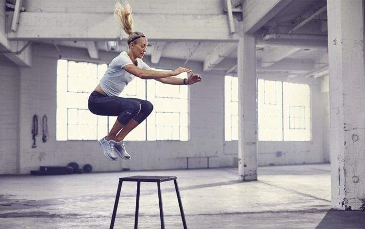 Comece na posição de agachamento e salte para essa superfície elevada, consequentemente volte para a posição inicial de agachamento e salte novamente. É um exercício de muita intensidade e manterá seu coração acelerado.