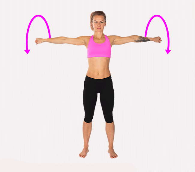 Movimente seus braços em círculos rapidamente no sentido horário e no fim do exercício, você pode repetir no sentido anti-horário.
