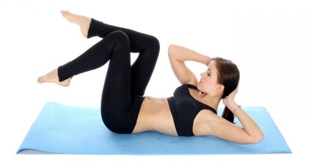 Deite com as costas apoiadas no colchonete, levante as pernas sem tirar, e simule pedalar em uma bicicleta com os pés para cima. Com as mãos atrás da cabeça, alcançando o joelho direito quando ele estiver mais perto do abdômen e repita tudo de novo quando o esquerdo estiver mais próximo. Tome sempre cuidado com a coluna.