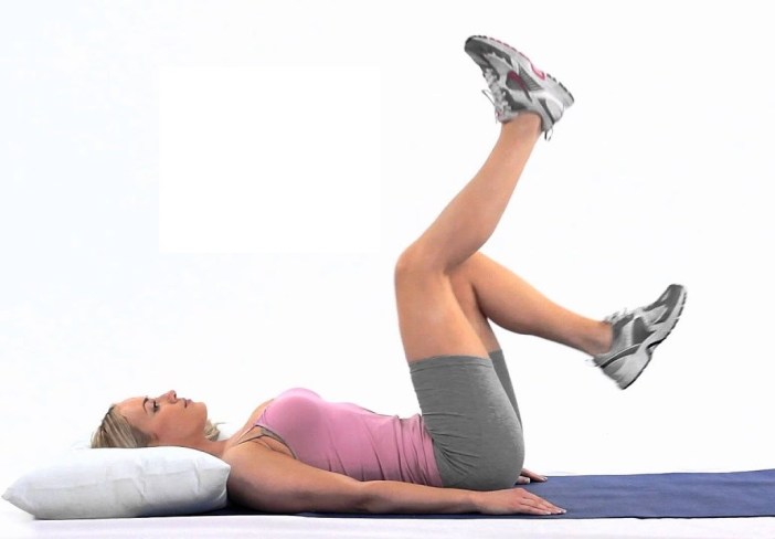 Como Fazer: Deite com as costas apoiadas no colchonete, levante as pernas sem tirar as costas do chão e simule pedalar uma bicicleta com os pés para cima.